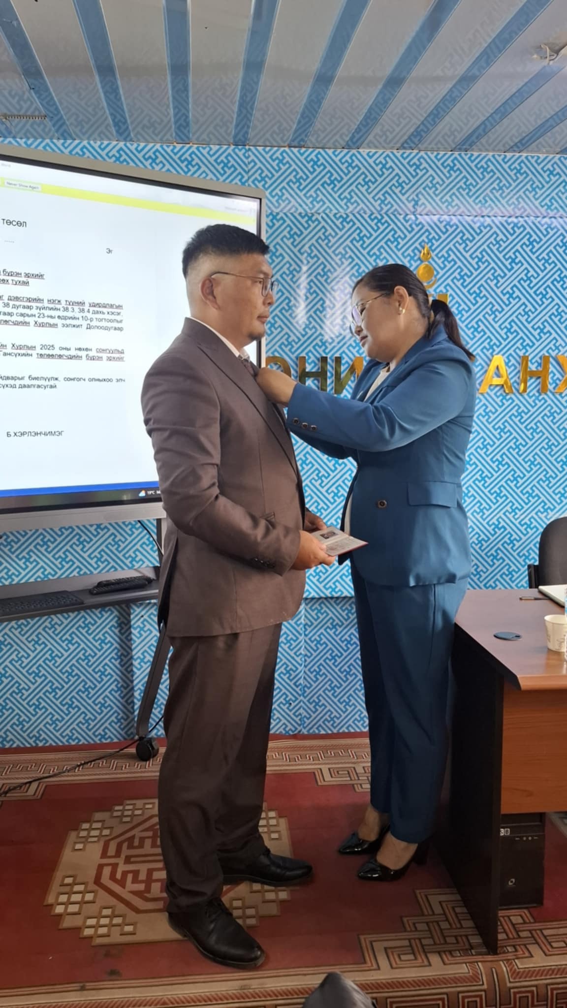 Аймаг, нийслэл, сум, дүүргийн иргэдийн Төлөөлөгчдийн Хурлын 2025 оны нөхөн сонгуулийн үр дүнгээр хамгийн олон санал авсан Гомбодоржийн Гансүхийг ИТХ-ын төлөөлөгчөөр батламжлан үнэмлэх, тэмдгийг гардуулсан.