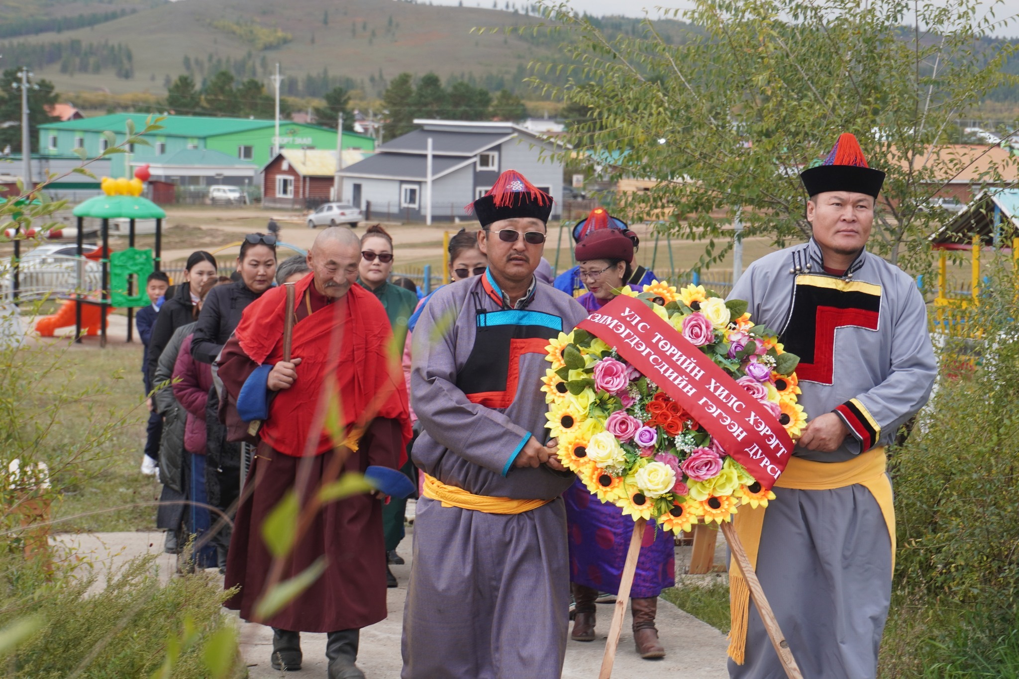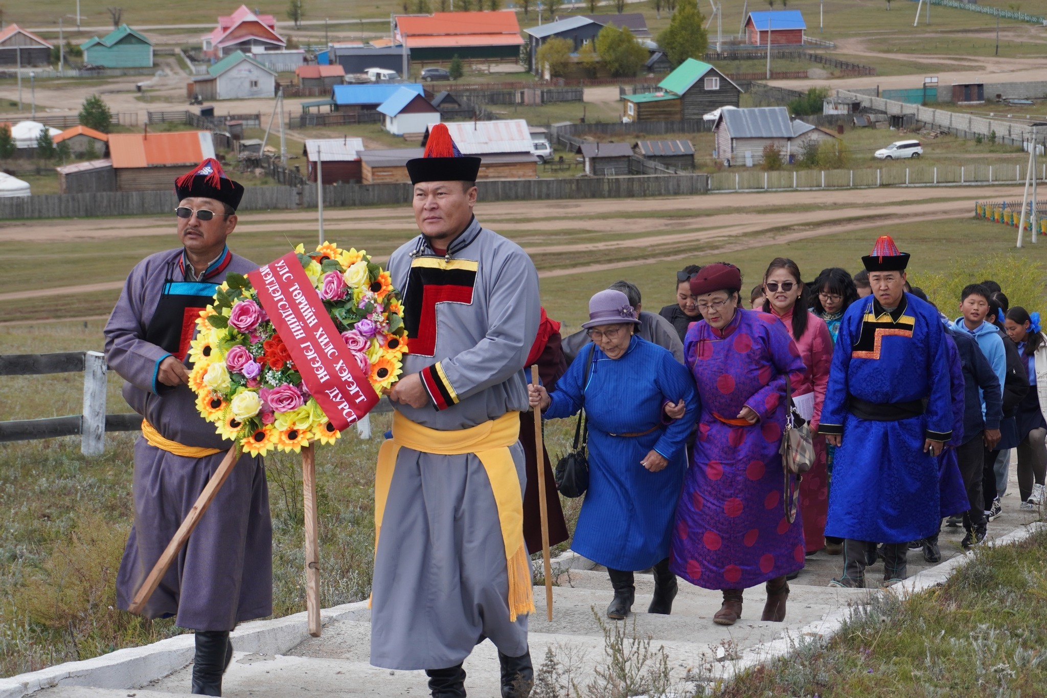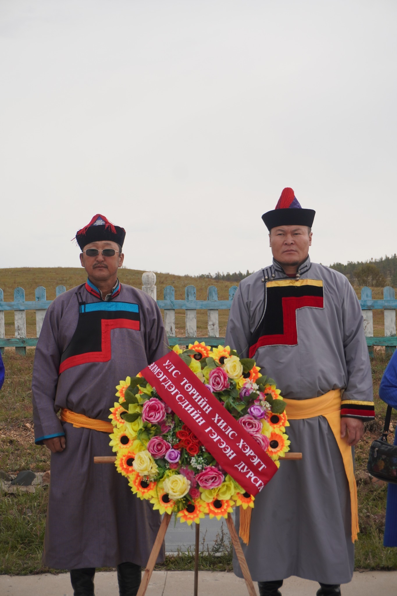 Оролцогчид хэлмэгдэгсдийн хөшөөнд цэцэг өргөж, өвөг дээдсээ хүндэтгэн дурсан сүүн цацал өргөж, 108 зул бадраалаа.