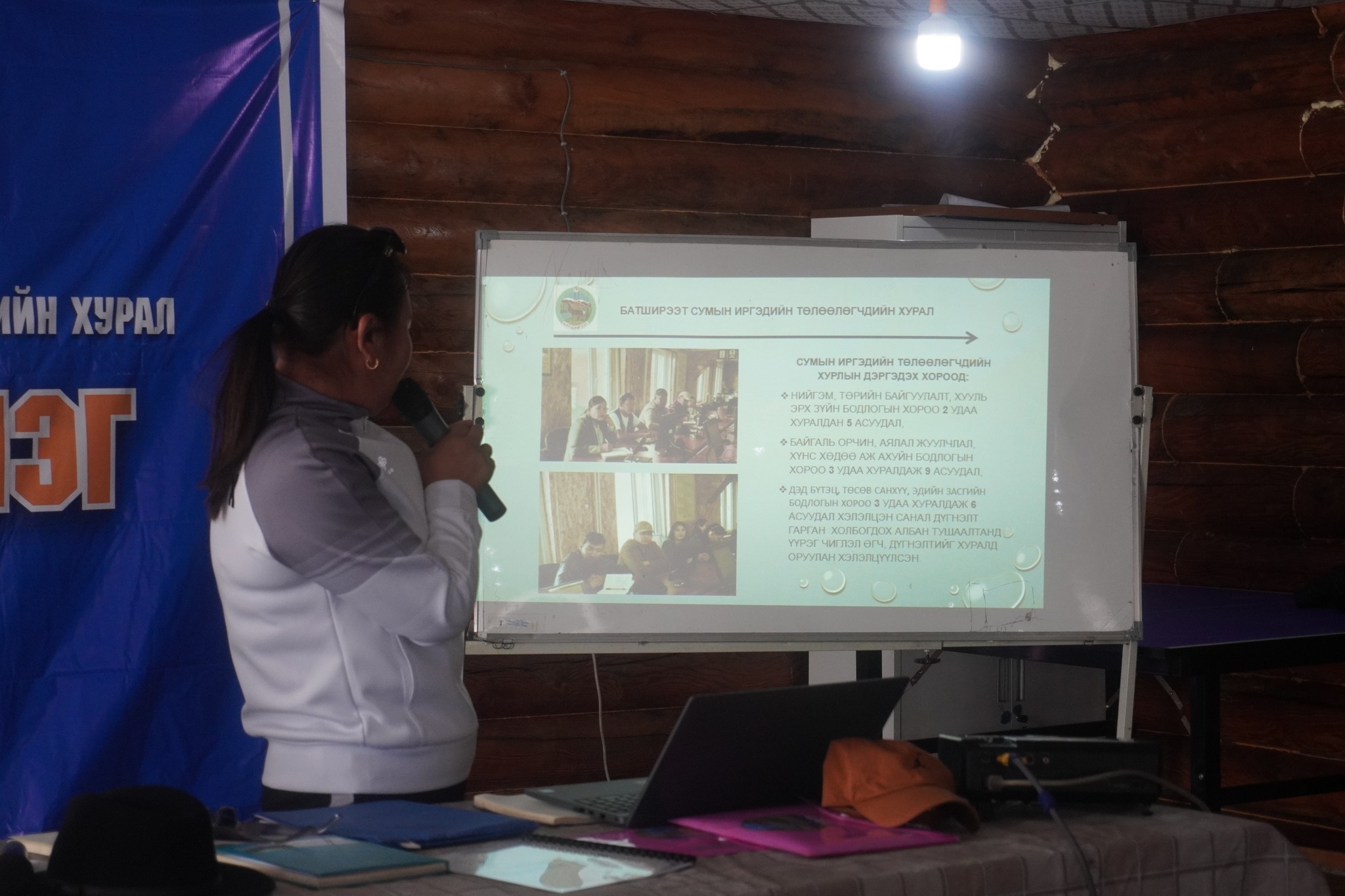 Аймгийн ИТХ-ын баримтлах бодлого чиглэл болон сумын ИТХ-ын үндсэн чиглэлд заагдсаны дагуу аймаг, сумын ИТХ-ын төлөөлөгчид иргэд сонгогчидтойгоо уулзах, тэдний санал хүсэлтийг сонсох, хийж хэрэгжүүлж буй ажлаа тайлагнах зорилгоор “ТӨЛӨӨЛӨГЧИЙН ӨДӨР” арга хэмжээг 10-р сарын 04, 05, 12,13-ны өдрүүдэд зохион байгууллаа.