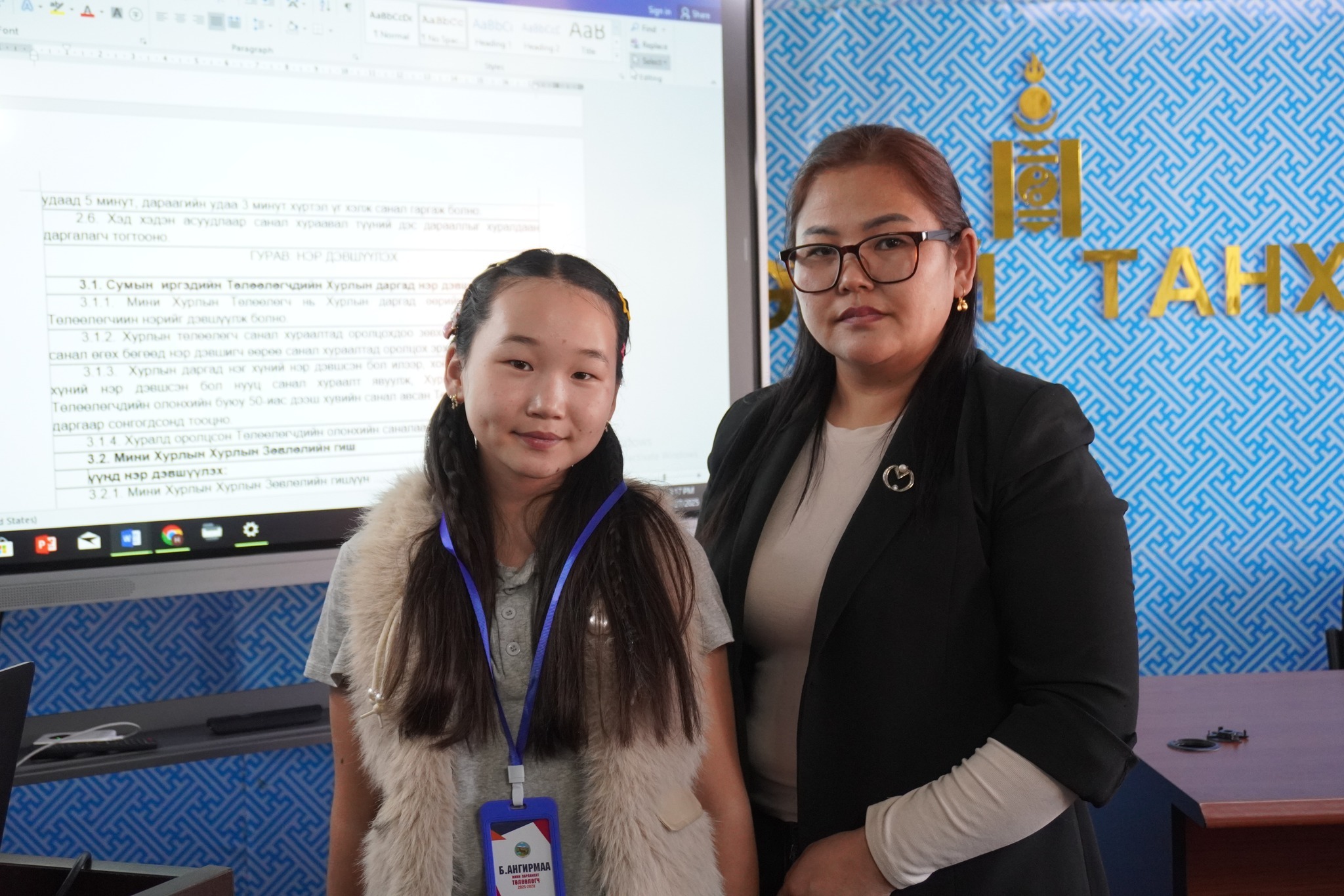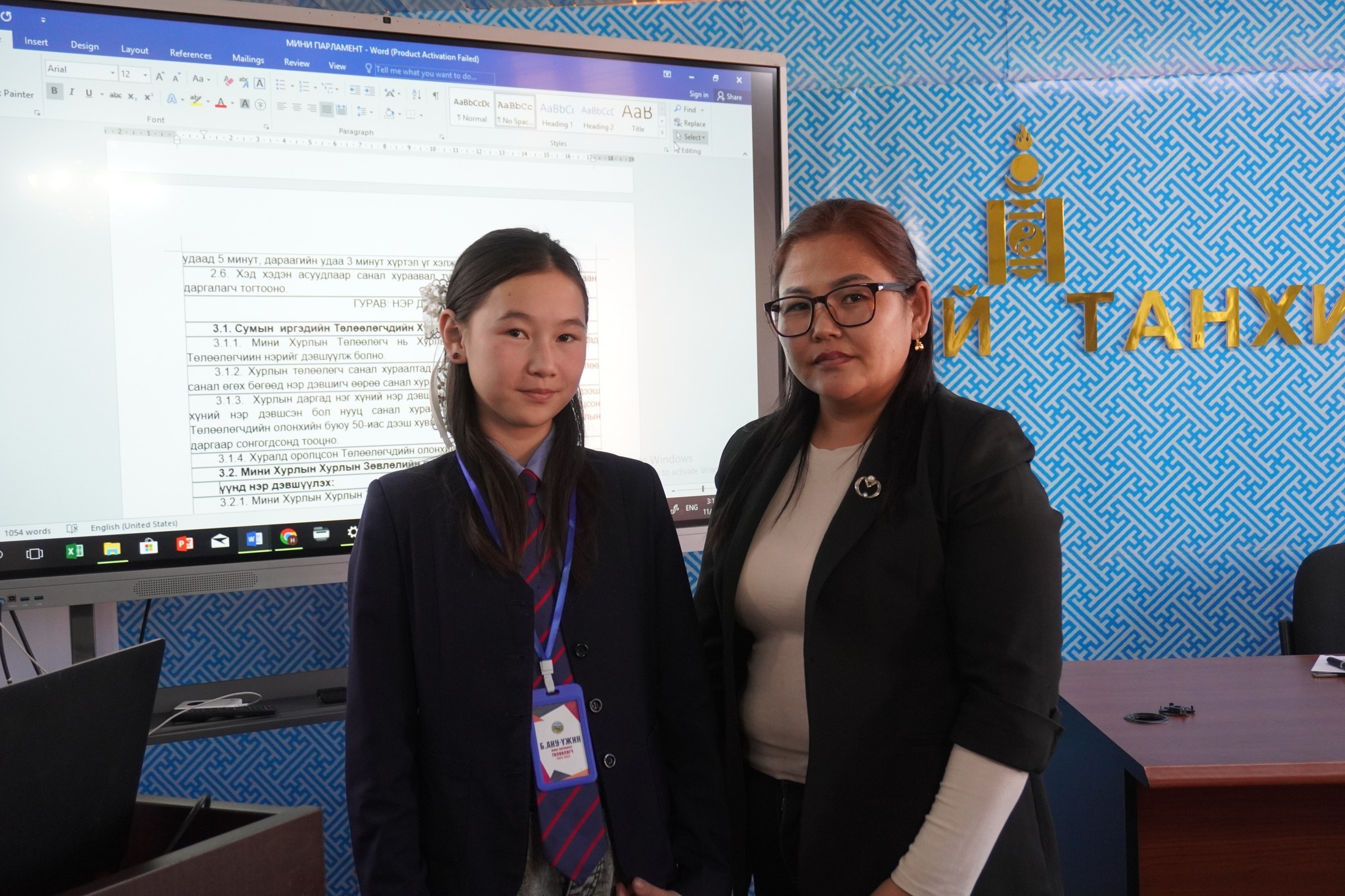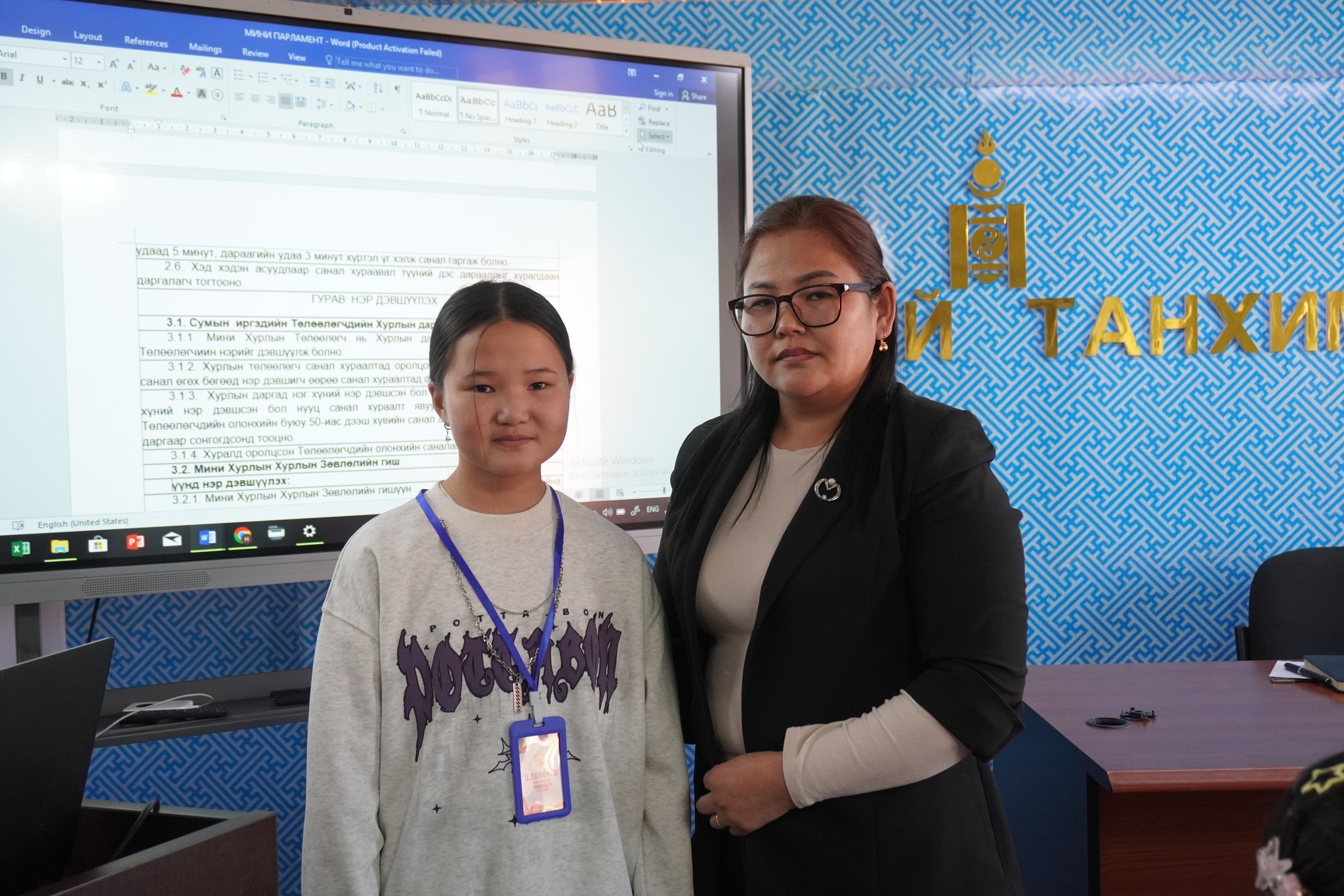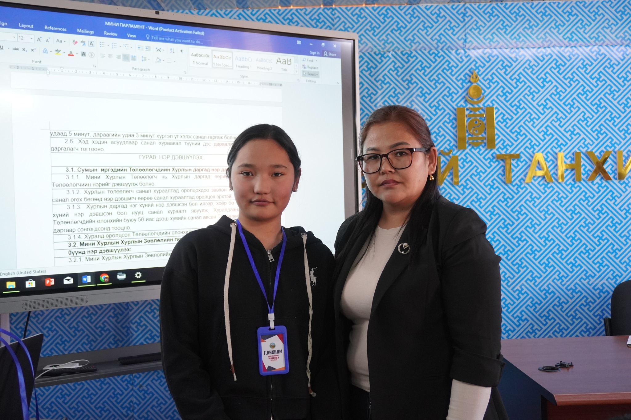 Анги хамт олноо манлайлан, тэдний дуу хоолой болж сонгогдсон “МИНИ – ХУРАЛДААНЫ”-ны хүүхдүүдэд ИТХ-ын дарга төлөөлөгчийн үнэмлэхийг гардуулан өгсөн.
