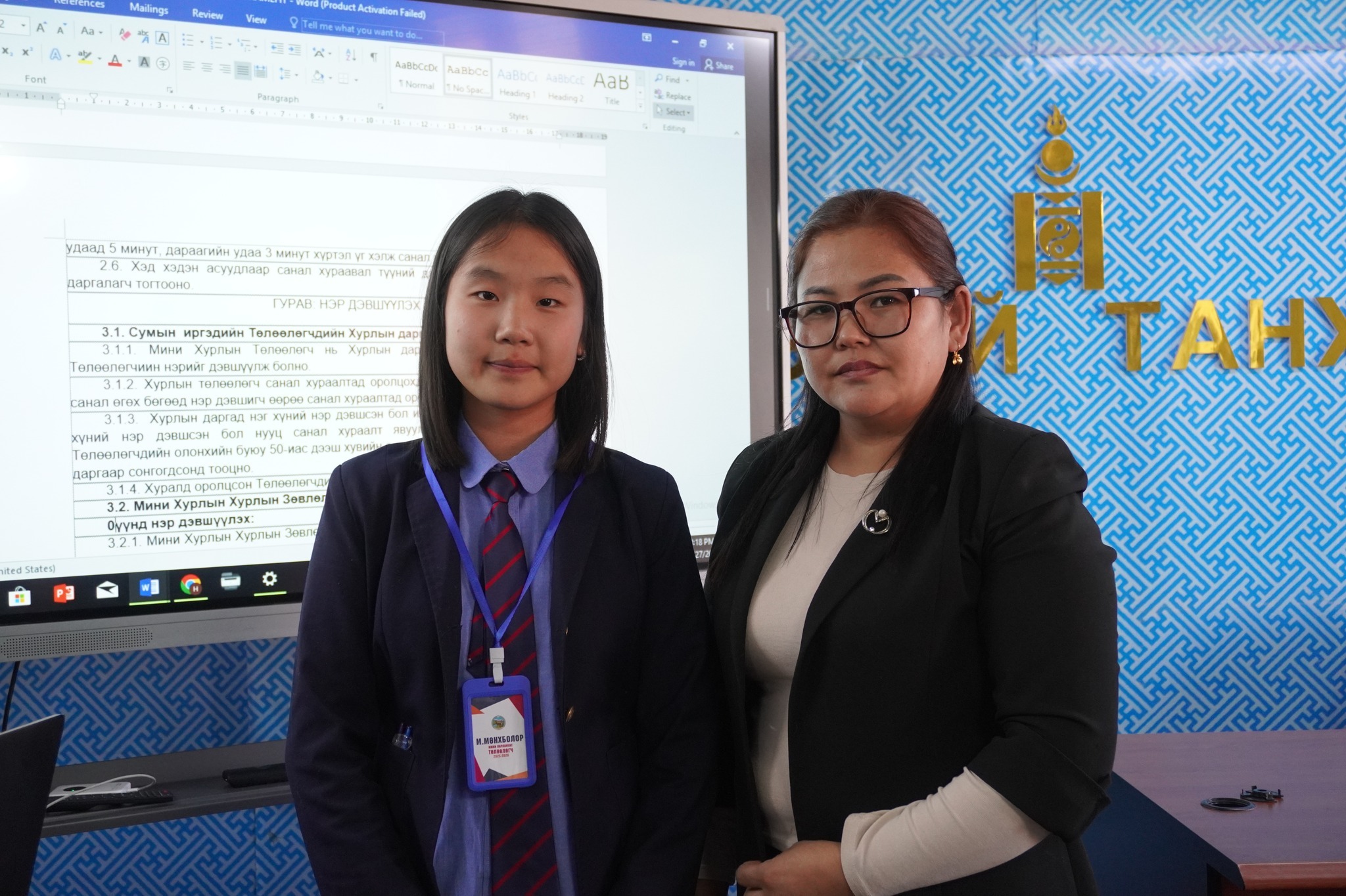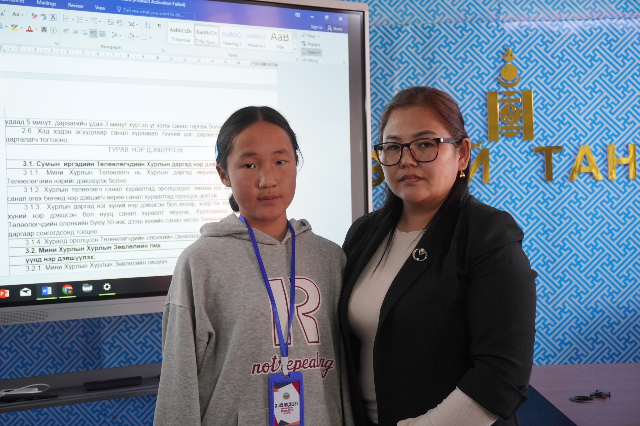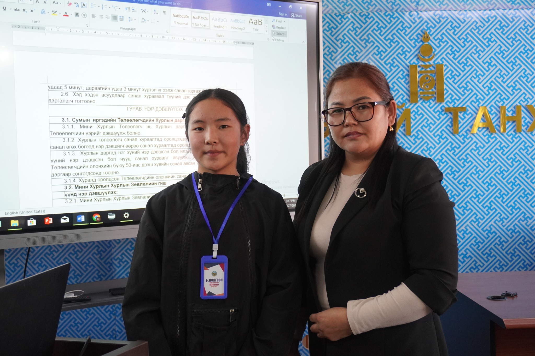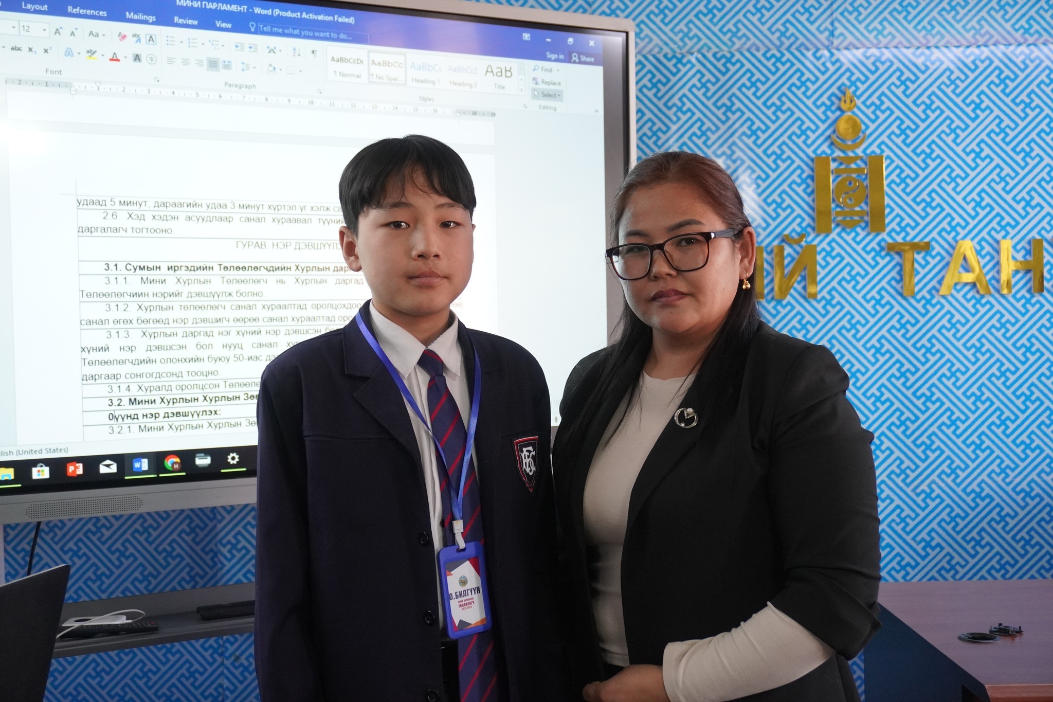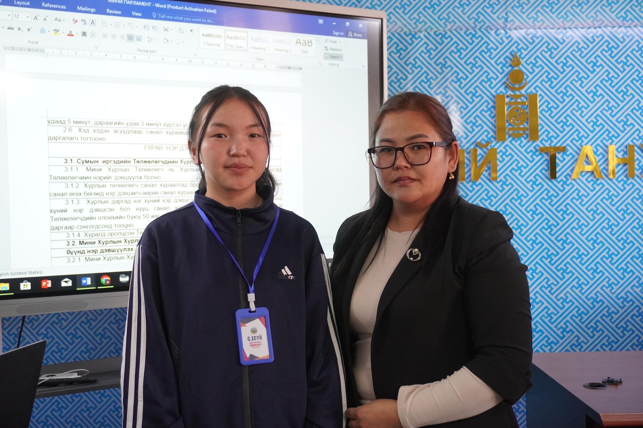 Анги хамт олноо манлайлан, тэдний дуу хоолой болж сонгогдсон “МИНИ – ХУРАЛДААНЫ”-ны хүүхдүүдэд ИТХ-ын дарга төлөөлөгчийн үнэмлэхийг гардуулан өгсөн.