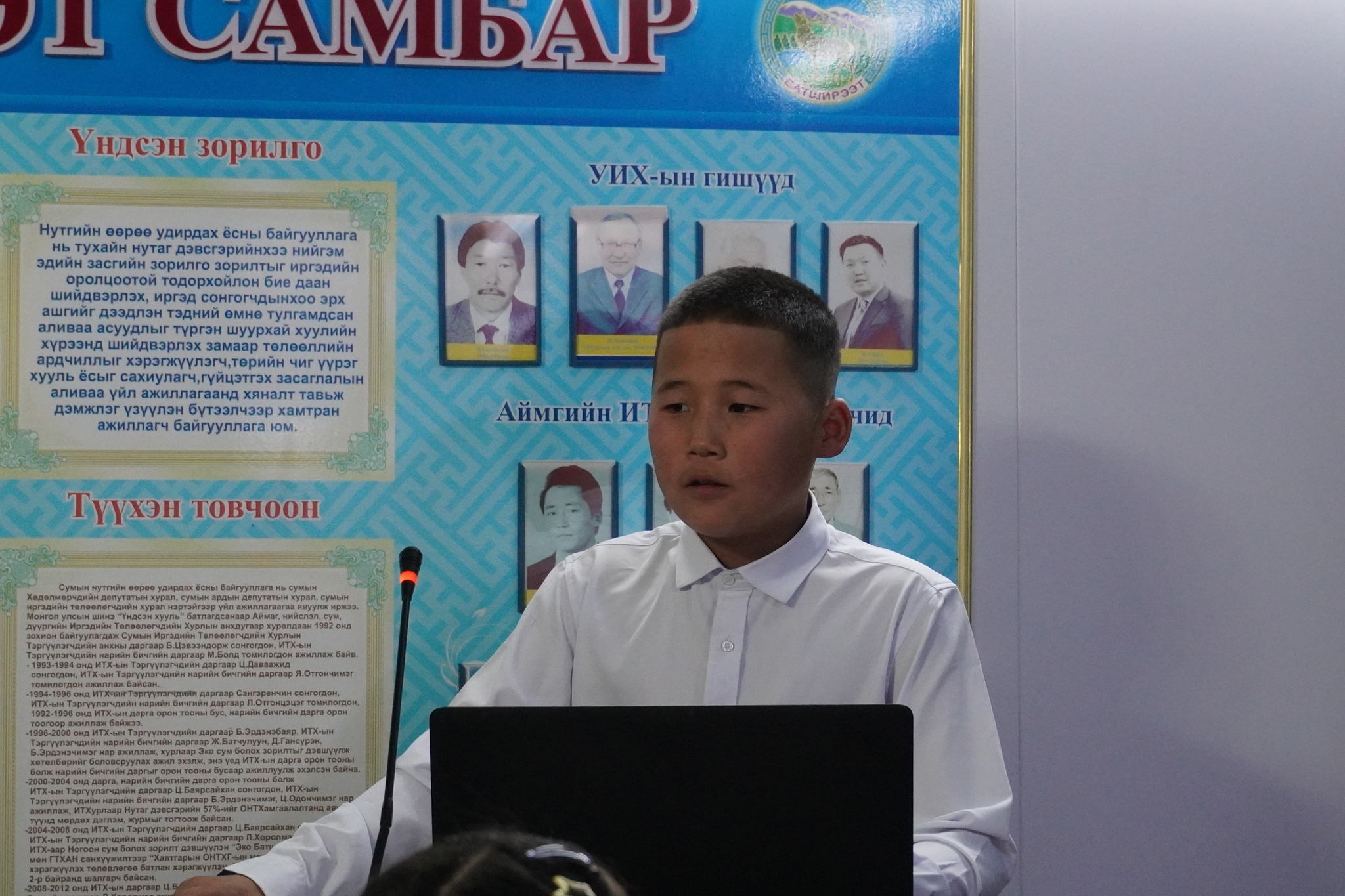 11 дүгээр сарын 20-ны өдөр сонгогдсон нийт 21 төлөөлөгч хүүхдүүддээ Нутгийн өөрөө удирдах байгууллага буюу иргэдийн Төлөөлөгчдийн Хурал гэж ямар байгууллага байдаг талаарх ойлголтыг өгч, хүүхдүүдийг 7, 7-оор нь баг болгон хувааж, сургууль болон сумынхаа хэмжээнд тулгамдаж буй асуудлуудыг судалж, эрэмбэлэн гаргаж ирэх үүрэг даалгаврыг өгч ажилласан.