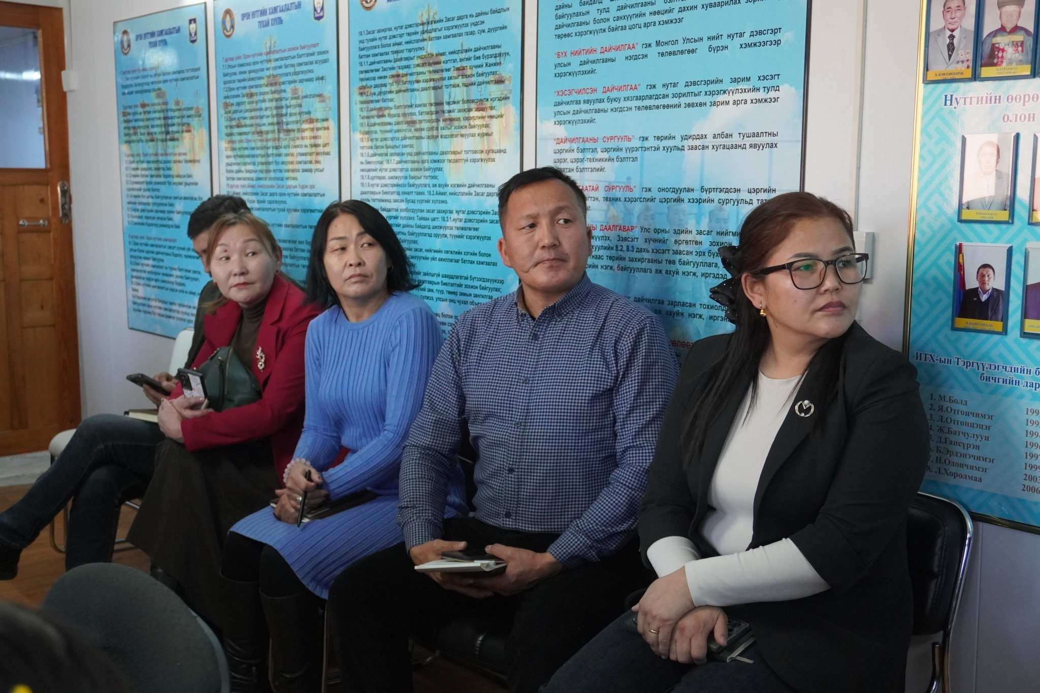 Тус хуралдаанд урилгаар ИТХ-ын дарга Б.Хэрлэнчимэг, Засаг дарга Б.Алтангэрэл, багийн Засаг дарга Д.Хонгорзул, Л.Мөнхчулуун /ИТХ-ын төлөөлөгч/, ЕБС-ийн нийгмийн ажилтан Б.Ариунаа нар оролцов.